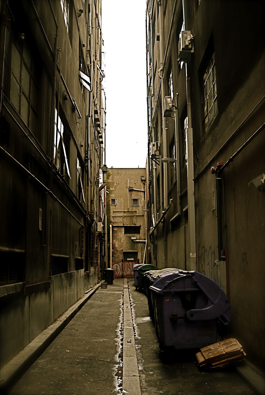 Here is how I imagine the alleyways in the film to look like; very narrow streets so our characters appeared to be hemmed in and adding a claustrophobic feel to the atmosphere of the scenes; and I'd like find some locations with high rise buildings that seem to add to the claustrophobic feel; pinning our characters into a seemingly inescapable encounter with the undead.